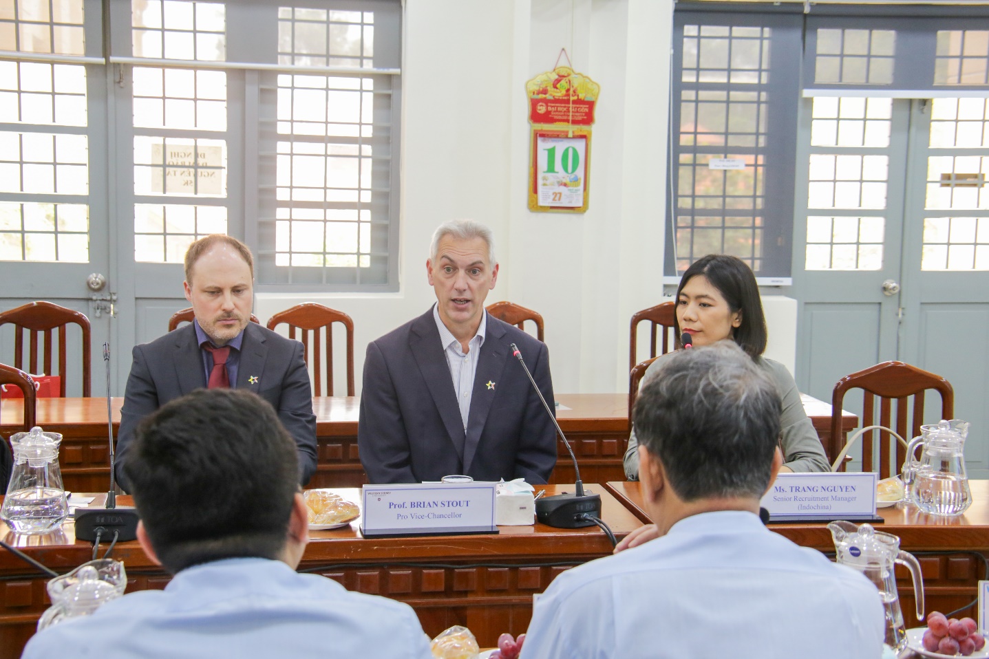 Representing Western Sydney University were Professor Brian Stout, Deputy Vice-Chancellor responsible for the Humanities, Arts and Social Sciences group, Dean of the School of Social Sciences, and Liverpool campus Provost; Dr. Garth Lean, Head of the Discipline of Tourism and Heritage, Senior Lecturer in Tourism and Heritage, and Leader of the Tourism in the Digital Age and Tourism Innovation Research Group, School of Social Sciences; and Ms. Trang Nguyễn, Senior Recruitment Manager for Indochina, International Admissions Office, Western Sydney University.